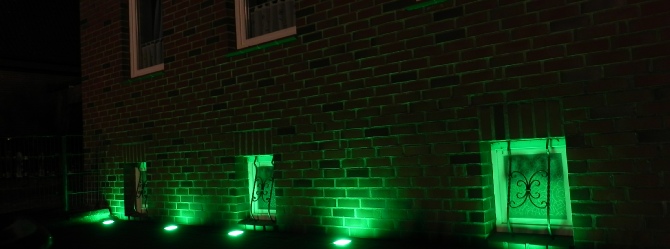 Зеленый свет идеально подходит для освешения ландшафтного дизайна и тротуарных дорожек.